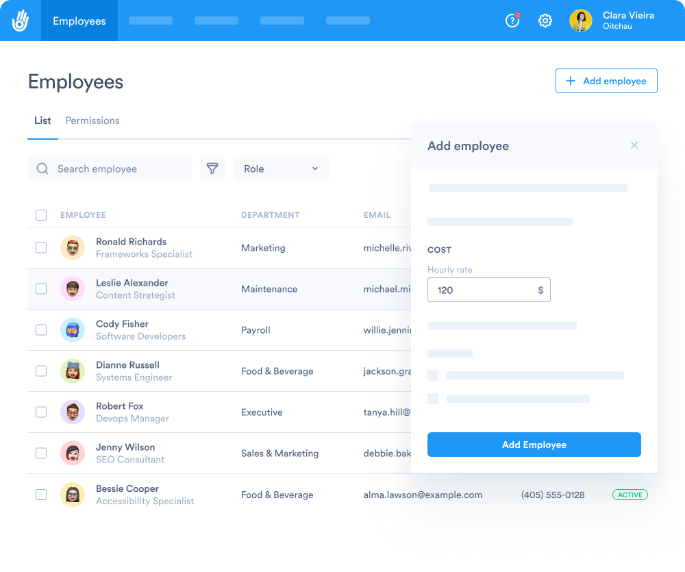Add and assign members to the relevant projects within the Day.io platform. Set employee cost per hour, project location, and type of service.