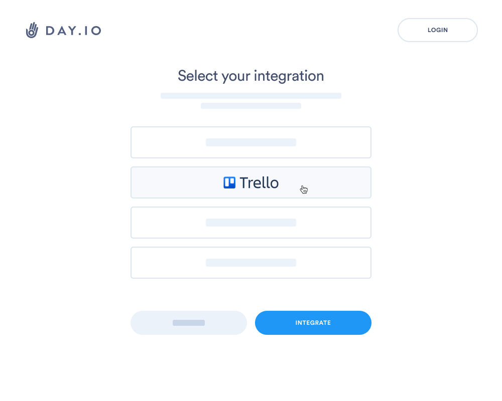Create your free Day.io account, register your company, select the project tracking plan, and enable the Trello integration.